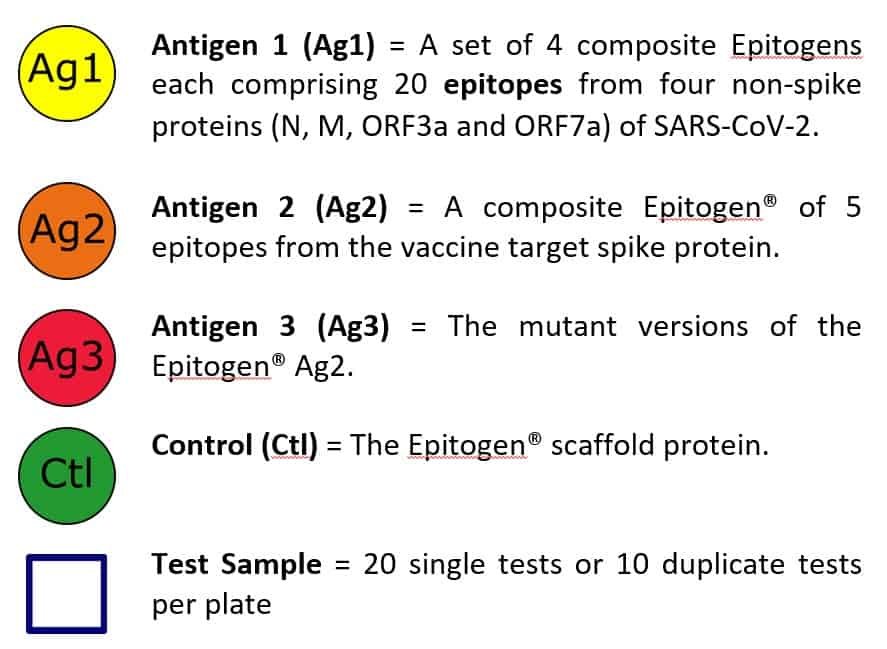 The Immunity EpitoGen® test is designed to detect IgG antibody responses to the vaccine target spike protein, the mutant spike containing prevalent mutations, and other non-spike SARS-CoV-2 proteins. The test can evaluate how effective the vaccine-induced protection will be in combating SARS-CoV-2 and emerging SARS-CoV-2 variants. Moreover, the test evaluates antibody response to non-spike SARS-CoV-2 proteins and their corresponding mutants. Therefore, the test can also differentiate between immunisation-induced immunity and infection-induced immunity.