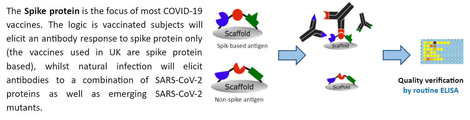 Currently, anti-N and anti-S antibody assays are used with the deliberate intention of identifying natural infection as opposed to the effects of vaccine. However, both assays have limitations. It was observed that significant number of cases (5%) react only to the spike or nucleocapsid antigens, but not both. Also, accumulating mutations driven by antigenic drift, or by selection will further reduce sensitivity of the existing tests. Therefore, traditional antibody assays using either the spike or nucleocapsid as antigens are limited in their detection accuracy.