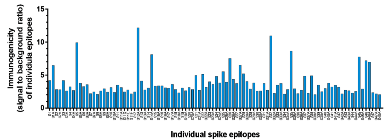 Using EpitoGen Technology, a set of 10 immunodominant non-spike reference epitopes and 10 non-spike mutant epitopes corresponding to SARS-CoV-2 viral proteins were complexed to create a non-spike antigen. Whilst a set of reference spike immunodominant epitopes were complexed to create spike-based antigen.