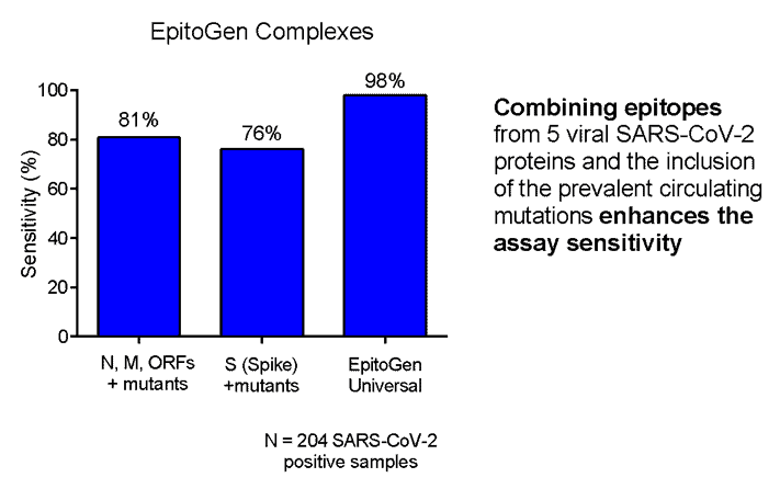 This is the first Epitope-based SARS-CoV-2 test, the only test to utilise five viral SARS-CoV-2 proteins in one assay, and to include prevalent mutations.